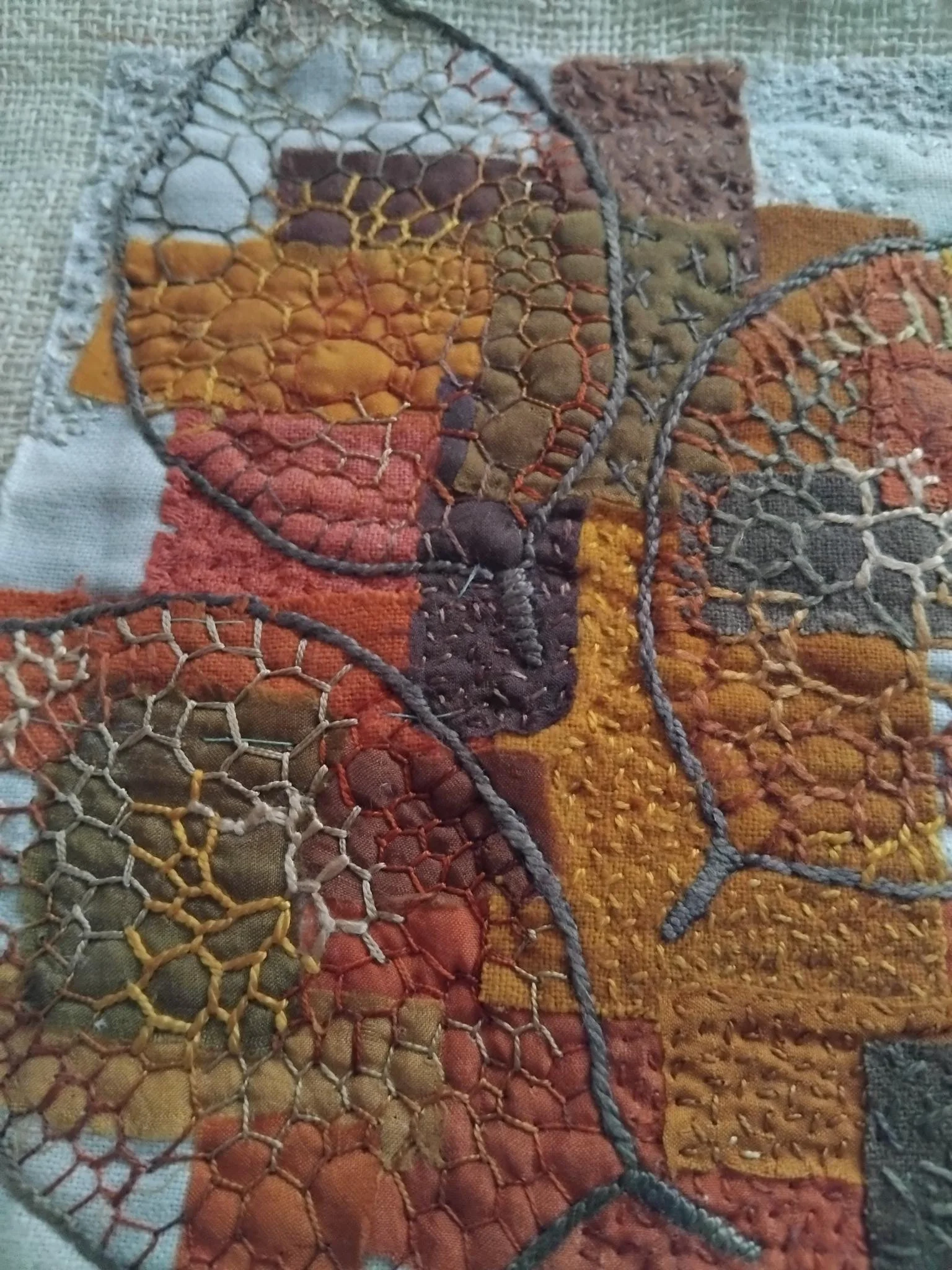 Bringing the stories that are waiting to be told to life with needle and thread, stitch by stitch, connecting the threads of the world together, connecting me to nature through my hands touching the energy of plants and berries used to dye the threads…